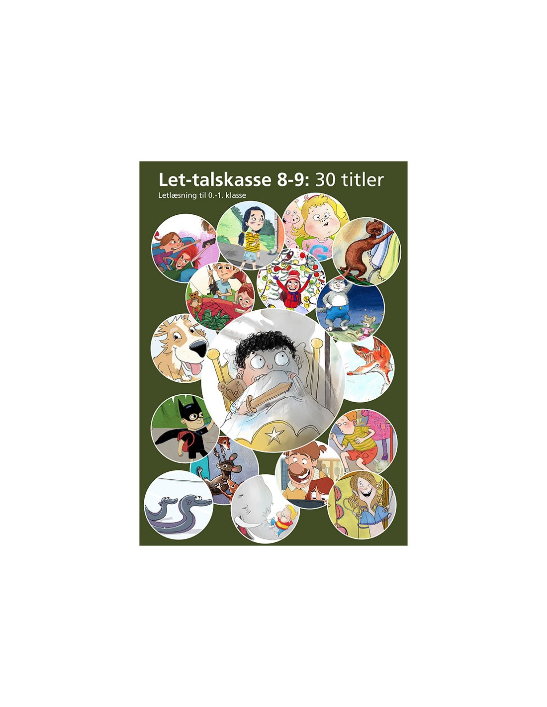 Let-talskassen indeholder følgende titler:- Dy i en by (Let-tal 8)- En ny pc (Let-tal 8)- Må vi se tv? (Let-tal 8)- Birk er Batman (Let-tal 8)- Nu er vi to (Let-tal 8)- Se ud, Ib (Let-tal 8)- Ea må få en bh (Let-tal 8)- Hr. Tø (Let-tal 8)- Mi er to år (Let-tal 8)- Øl, te og is (Let-tal 8)- My vil have slik (Let-tal 8)- Fi i hø (Let-tal 8)- To ål på is (Let-tal 8)- Max er vaks (Let-tal 9)- Ask får en ven (Let-tal 9)- Må vi så få ro (Let-tal 9)- Bo i en kø (Let-tal 9)- Gita er en gris (Let-tal 9)- Åse elsker støj og møg (Let-tal 9)- Ti øl i en å (Let-tal 9)- Luna er vild med lys (Let-tal 9)- Vitus får en hund (Let-tal 9)- En kat og en mus (Let-tal 9)- Wille kan spille (Let-tal 9)- Se et fyr (Let-tal 9)- Har du ædt dem? (Let-tal 9)- Silas ser en zombie (Let-tal 9)- Emil ser en elefant (Let-tal 9)- Finn får smæk (Let-tal 9)- Finn slår en fis (Let-tal 9)