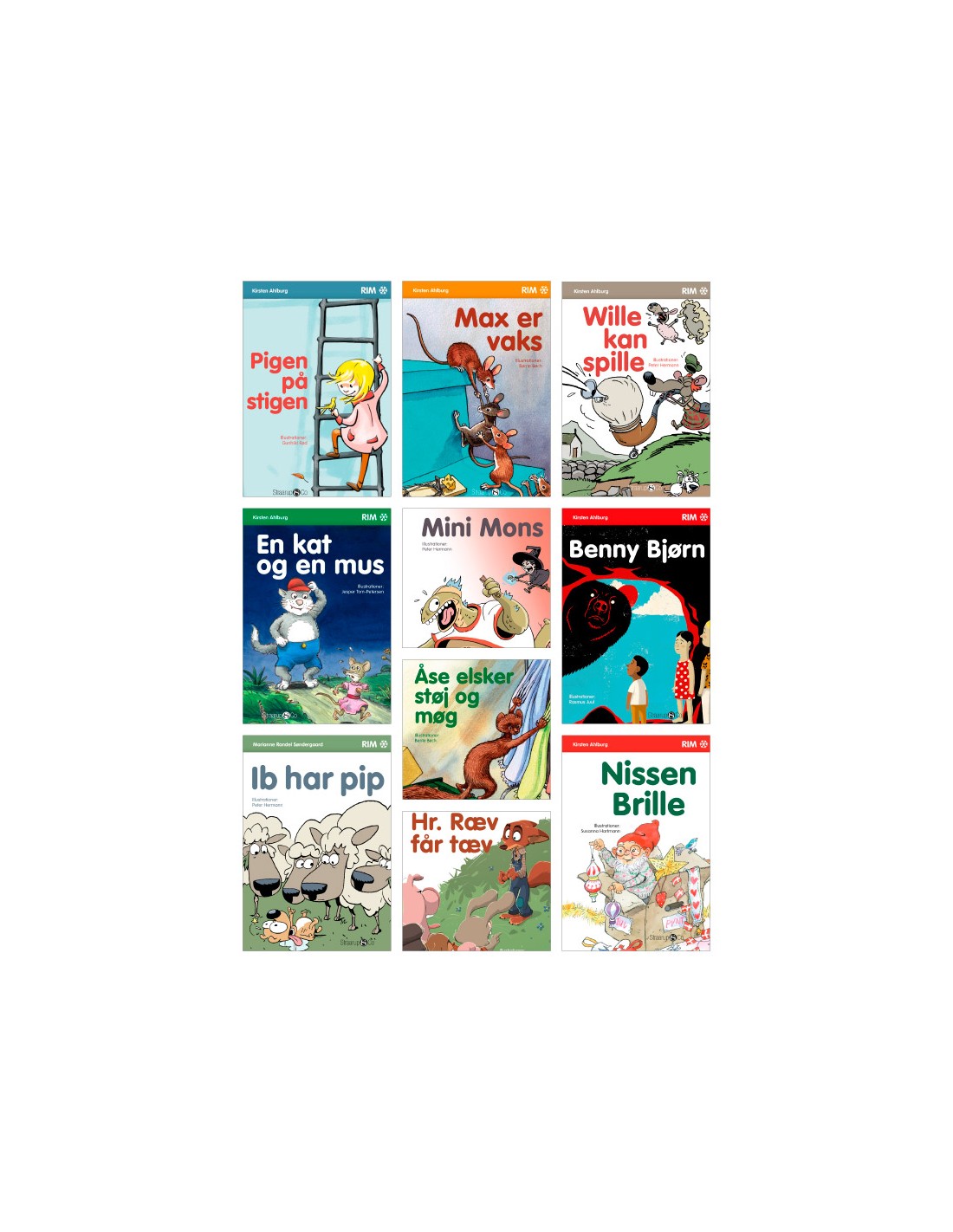 Rim-serien består af letlæsningsbøger med enderim på hvert opslag. Rimene er med til at understøtte børnenes læsning og afkodningen af de enkelte ord. Bogpakken passer perfekt til børn i 0.-2. klasse.