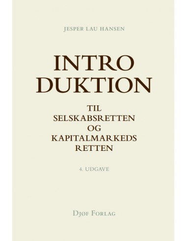 Djøf ForlagIntroduktion til selskabsretten og kapitalmarkedsretten foreligger nu i 4. udgave og giver en grundig indføring i de to juridiske discipliner. Bogen gennemgår de fundamentale principper og hensyn, som ligger bag regulering af selskaber og kapitalmarkeder. Disse grundlæggende forhold og begreber forklares i et let tilgæn - geligt sprog, og samtidig fremstilles samspillet mellem det finansielle tilsyn i EU og i Danmark.
