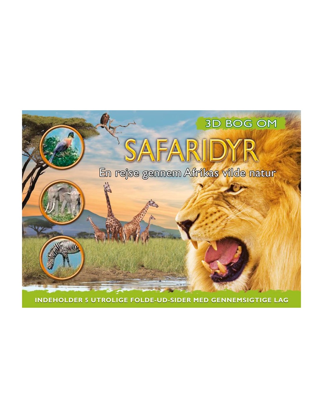 Tag på en fantastisk 3D-rejse ud i den vilde afrikanske natur med fem utrolige folde-ud sider, som giver et levende indtryk af forskellige safarilokaliteter.