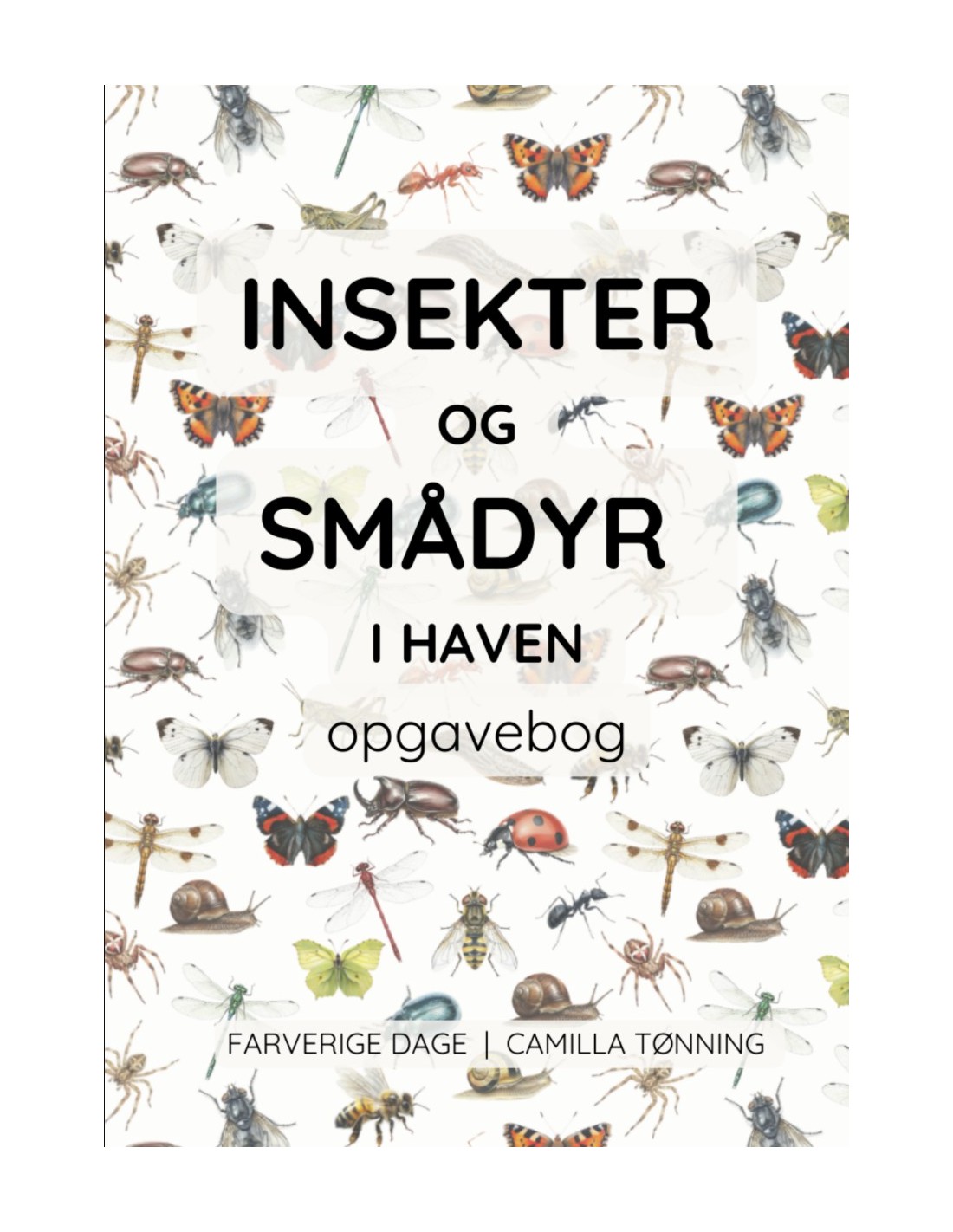 Opgavebogen på 52 sider er fyldt med sjove opgaver med insekter og smådyr i haven som omdrejningspunkt.