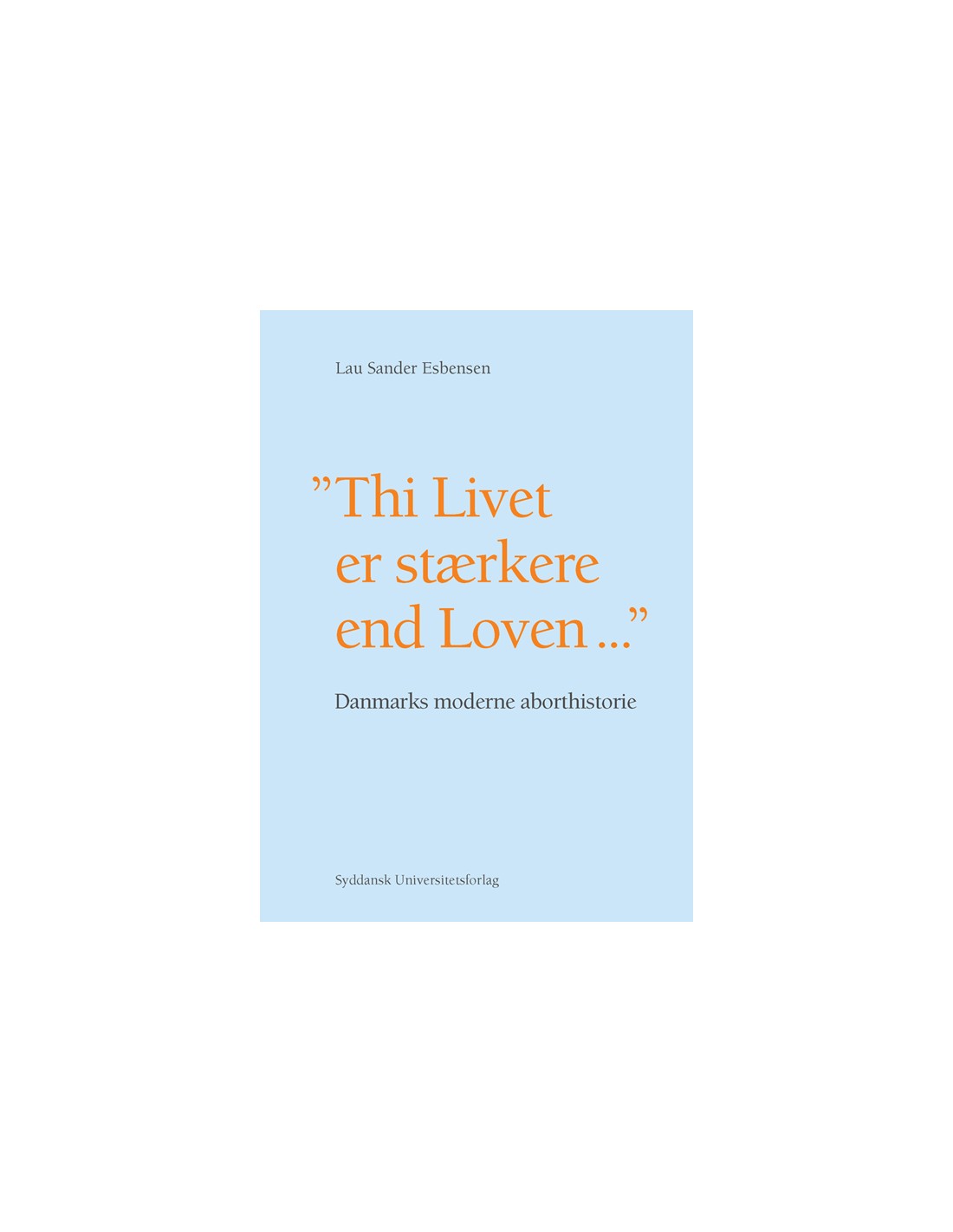 »Thi Livet er stærkere end Loven …« er den første samlede fremstilling af Danmarks moderne aborthistorie. Den behandler selvsagt en række konkrete emner: Skiftet i stemningen omkring abortforbuddet og de illegale aborter; hvor farlige de illegale aborter egentlig var; aborttallets udvikling; domstolenes rolle; lægernes rolle; de fire svangerskabslove; det legale abortsystem; Mødrehjælpens rolle; den offentlige debat; hvordan det pres så ud, der kom fra kvinderne selv – og mere til.