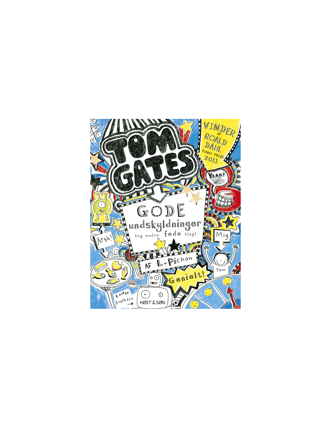 Høst og SønEgentlig er Tom Gates’ liv genialt. Hvis altså ikke lige det var for de der lektier, som Mr Fullerman har givet 5.F for (i ferien!); hans storesøster Delia (som gør, hvad hun kan for at forpeste hans liv!); og for nyheden om, at han og Derek er blevet udtaget til at være med i skolebandet (pattebørnsmusik og rasleæg!). Tom får brug for alle sine gode undskyldninger – og mere til – for at redde sig ud af kniberne.