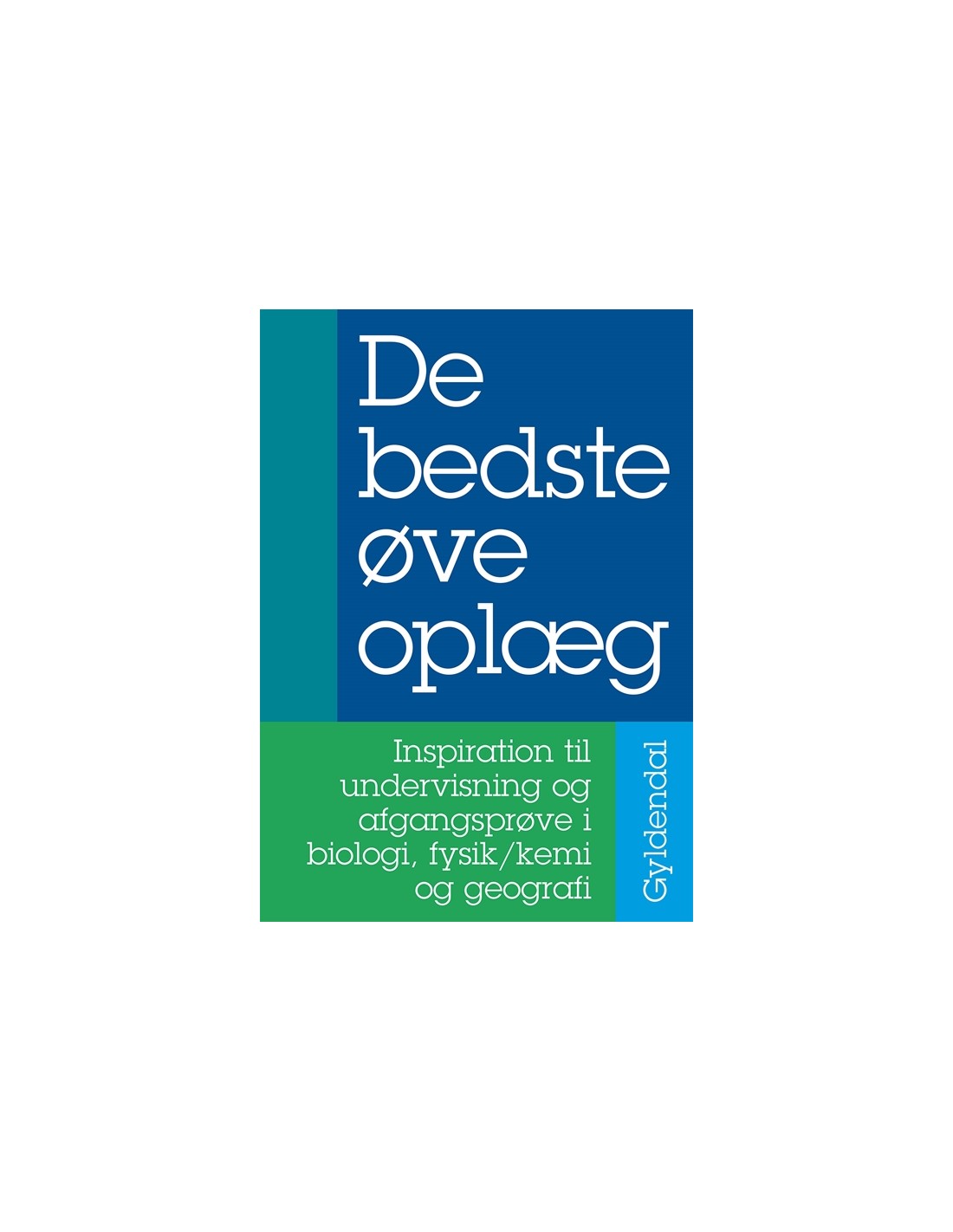 GyldendalDe bedste øveoplæg er en kopimappe med tværfaglige oplæg til biologi, fysik/kemi og geografi. Udgangspunktet er Fælles Mål 2014, hvor der er lagt speciel vægt på temaer der naturligt kalder på faglige redskaber fra hele gruppen af naturfag, samtidig med, at oplæggene opfattes som relevante for eleverne. Materialet kan enten bruges som egentligt undervisningsmateriale eller det kan anvendes som inspiration til naturfagslæreren.