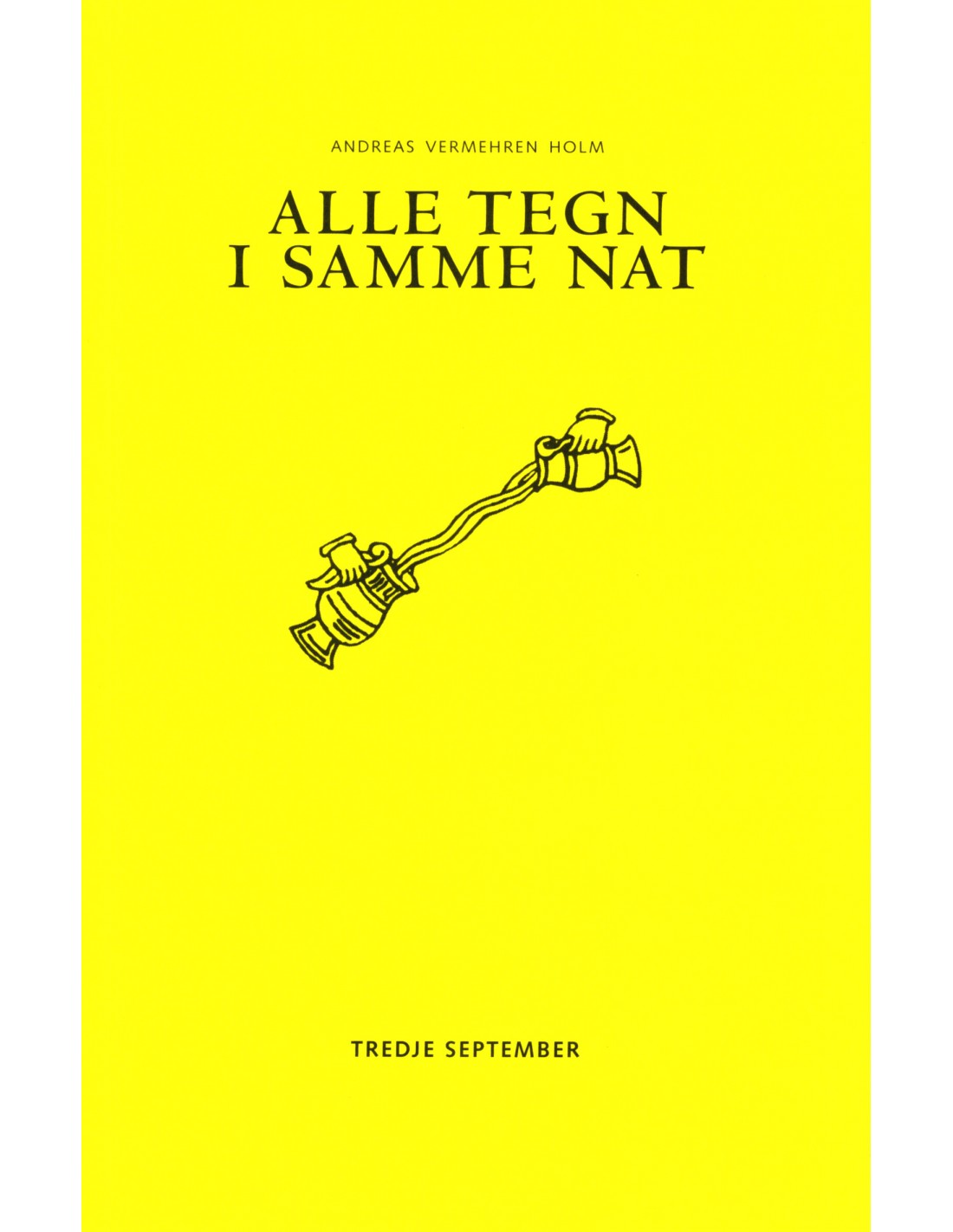 Alle tegn i samme nat er en malstrøm, en bevidsthedsoverskridelse og en besværgelse af verden. I mødet mellem myter og fakta, fabeldyr og truede arter, forvrængede citater og billeder, skriver Andreas Vermehren Holm et værk frem som både hvisker og skriger, tænker og bliver tænkt, en lysende vågen, ond drøm.