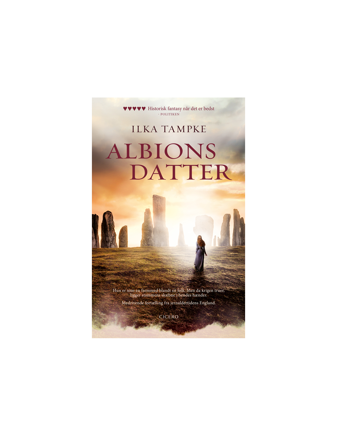 Albions datter er med sin smukke fortælling og uimodståelige heltinde en fantastisk læseoplevelse fra jernaldertidens England. Om kvinder og magt, om kærlighed og tro, om at være splittet mellem to mænd – og om sammenstødet mellem to kulturer.