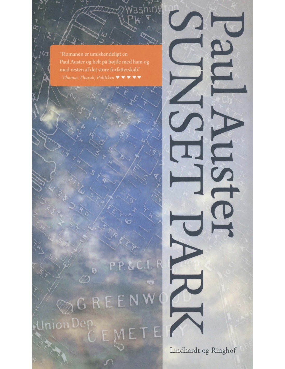 Med det økonomiske kollaps i 2008 som baggrund minder Sunset Park os om alt det varige: kærligheden, kunsten og livets mirakuløse forviklinger. Romanen cementerede Paul Auster som en af de vigtigste amerikanske forfattere.