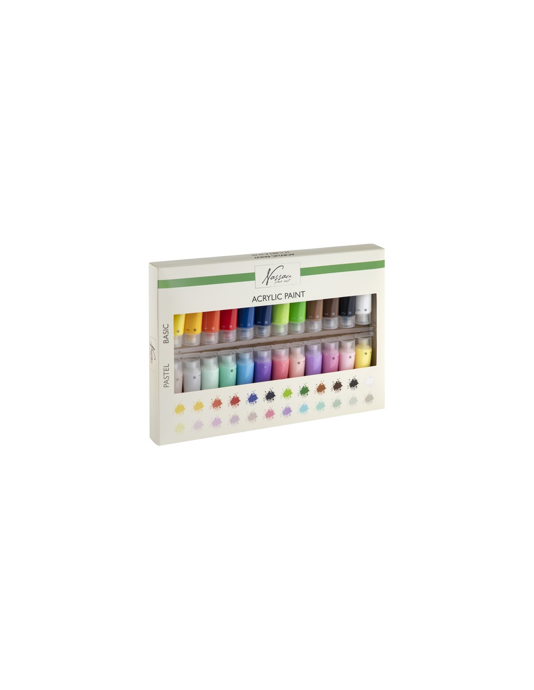 Akrylmaling, æske med 24 farver x 22 ml.Et flot akrylmalingsæt. Med de 24 farver får du både primærfarver og mere sarte pastelfarver. Kan bruges til at male på flere forskellige overflader så som træ, papir, pap og lærred.