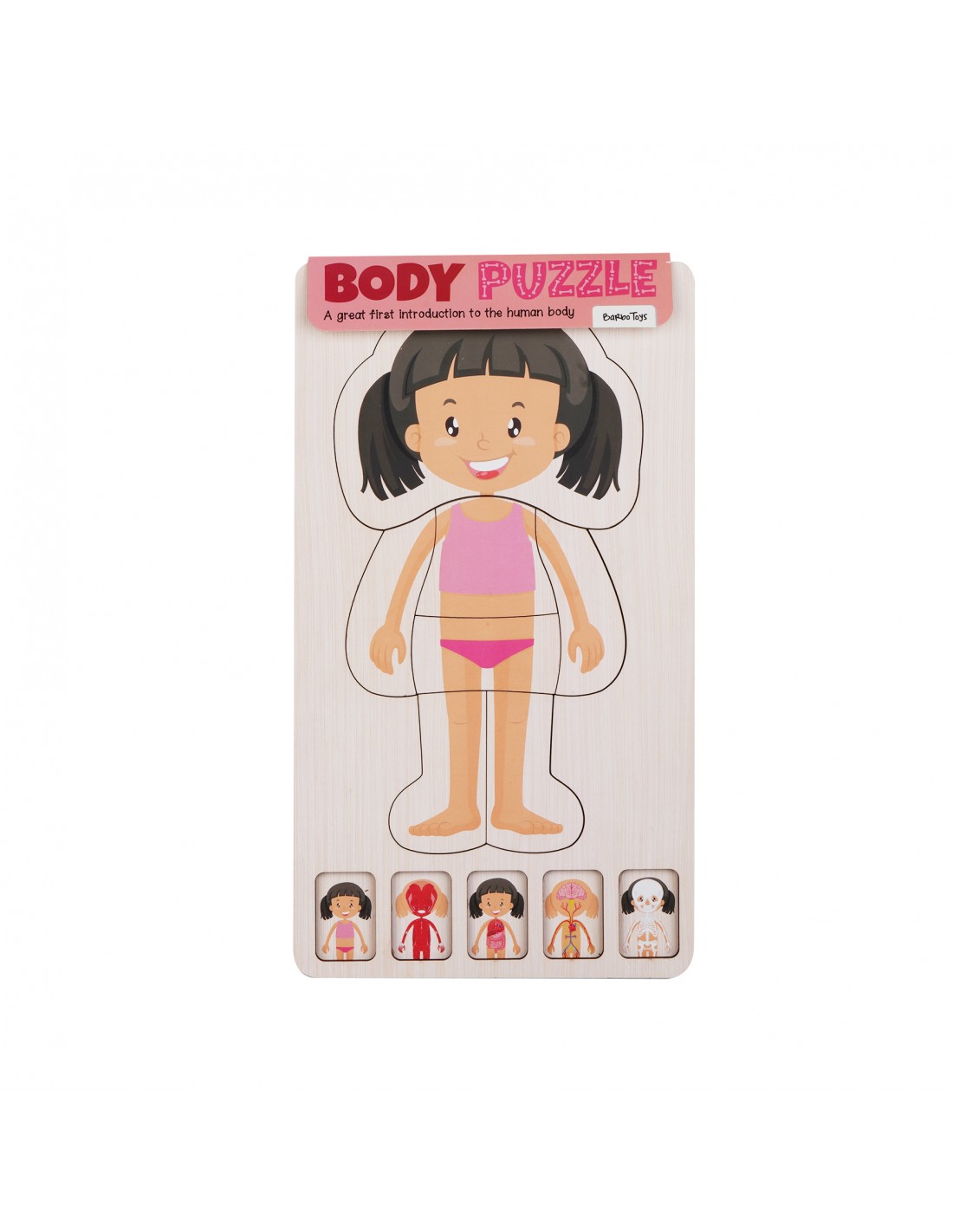 Dette lag-på-lag-puslespil i træ inviterer barnet til at udforske menneskekroppen gennem rolig og nysgerrig leg med en pigefigur som udgangspunkt. Brik for brik afslører puslespillet, hvad der gemmer sig under overfladen, og gør læringen om kroppen både engagerende og let at gå til.