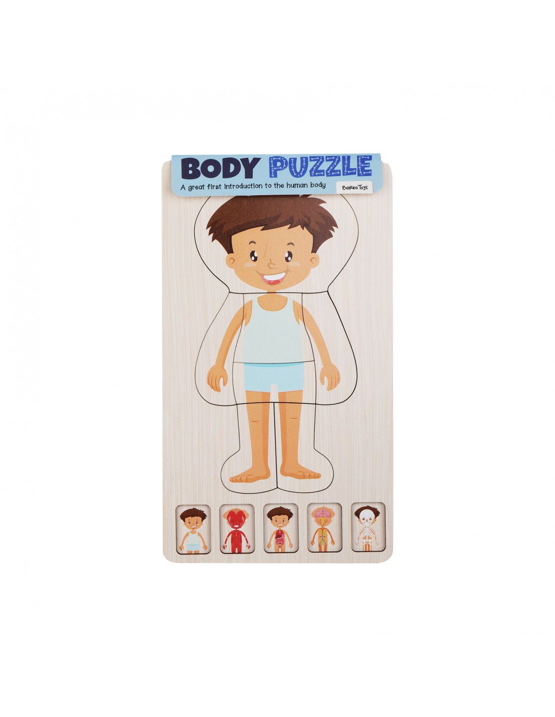 Dette lag-på-lag-puslespil i træ inviterer barnet til at udforske menneskekroppen gennem rolig og nysgerrig leg med en drengefigur som udgangspunkt. Brik for brik afslører puslespillet, hvad der gemmer sig under overfladen, og gør læringen om kroppen både engagerende og let at gå til.