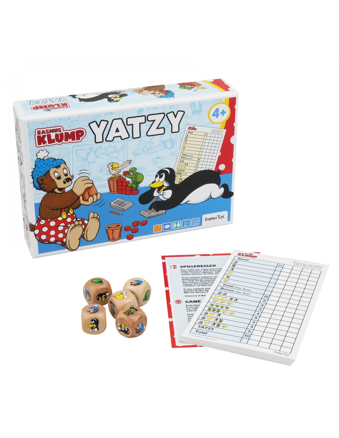 Slå med terningerne, tæl, og udforsk en verden af legende logik med Rasmus Klump. Denne glædesfyldte udgave af det klassiske terningspil erstatter tal og prikker med velkendte figurer og charmerende illustrationer, som gør det lettere for børn at genkende mønstre og følge spillets gang.