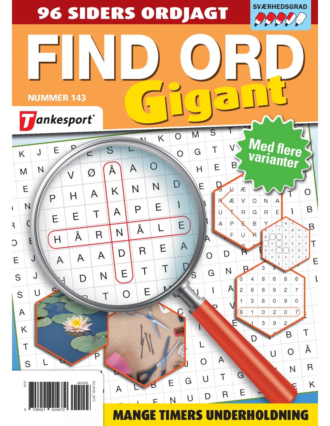 Find ord Gigant byder på endnu større udfordringer og helt nye typer af opgaver. I bladet kan du blandt andet glæde dig til Find Ord Duo med blandede temaer, Drille Find Ord, Pusle Find Ord samt de svære – men meget populære – Quiz Find Ord.Kort sagt: Masser af ekstra indhold til den dedikerede Find Ord-fan – og lidt mere oveni.