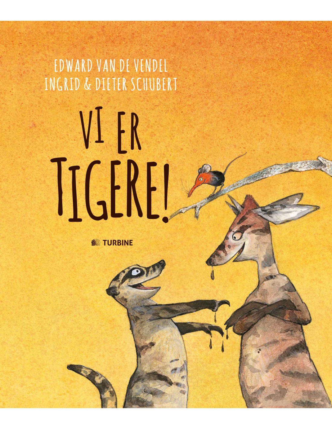 ”Vi er faktisk tigere,” siger Tex og Max til Miv.”Os alle tre. Sådan inderst inde.””Vi er ikke tigere, for en tiger har striber – og det har vi ikke,” siger Miv.Men Tex og Max finder på noget …Sød billedbog af den prisvindende forfatter Edward van de Vendel med fantastiske illustrationer af Ingrid og Dieter Schubert. En bog om at tro på, at man kan, hvad man vil – og om fantasi og venskab.