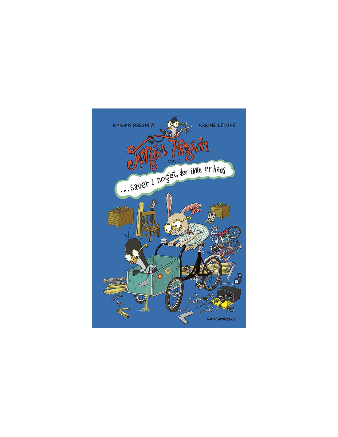 Jørgen Pingvin er ferm til at bruge en sav, og Jørgen Kanin viser sig at være god til at finde materialer, som man kan save i. Nogle gange glemmer hun bare at spørge om lov ...