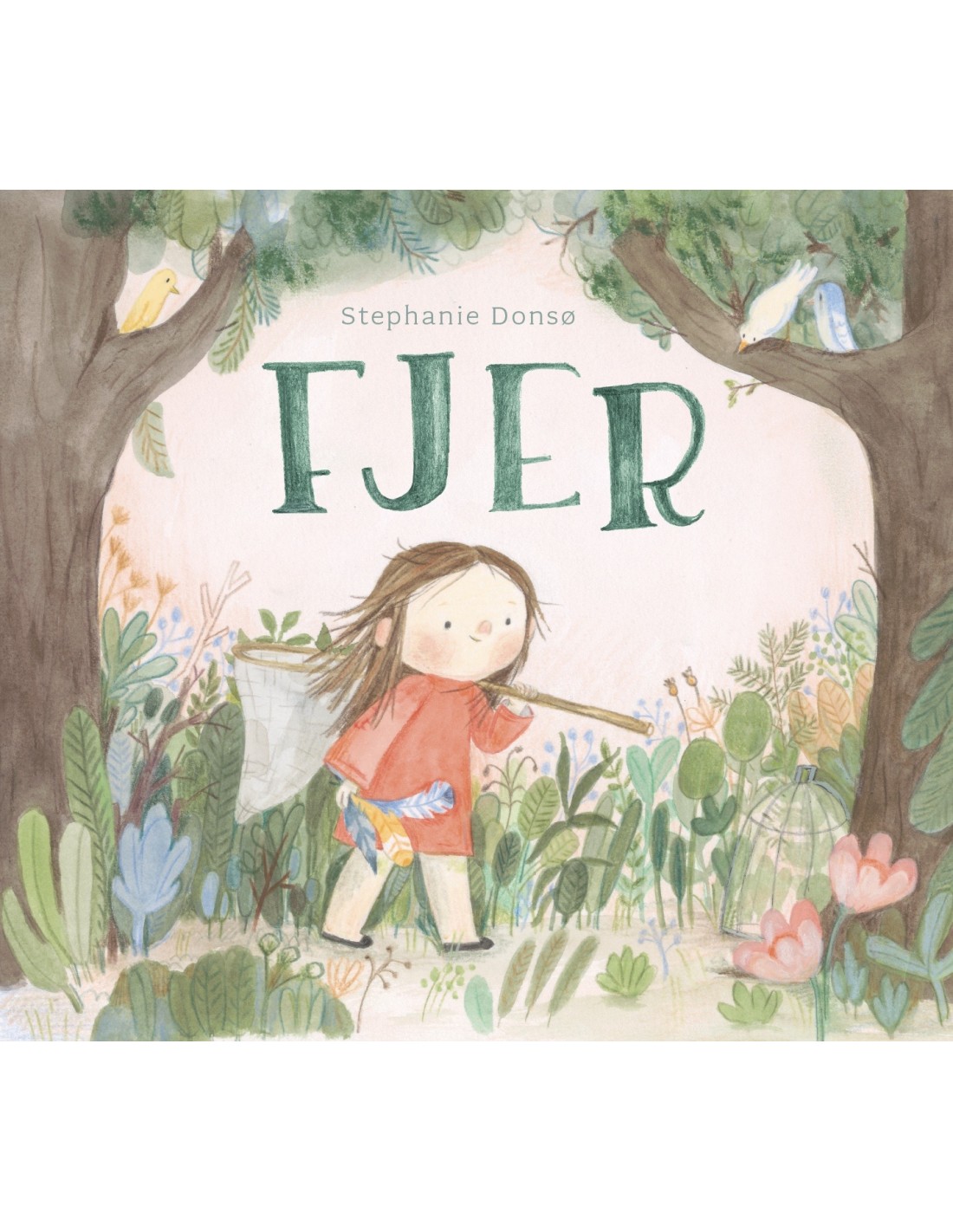 Om et tungt hjerte, der ønsker sig vinger. Fjer er en billedbog uden ord om sorg og hvor svært det kan være at bære den alene. En lille, tilsyneladende uskyldig pige fanger fugle for at tage deres fjer. Dem vil hun bruge til at sy sig et sæt vinger, så hun kan flyve op til sin mor, som bor i himlen.