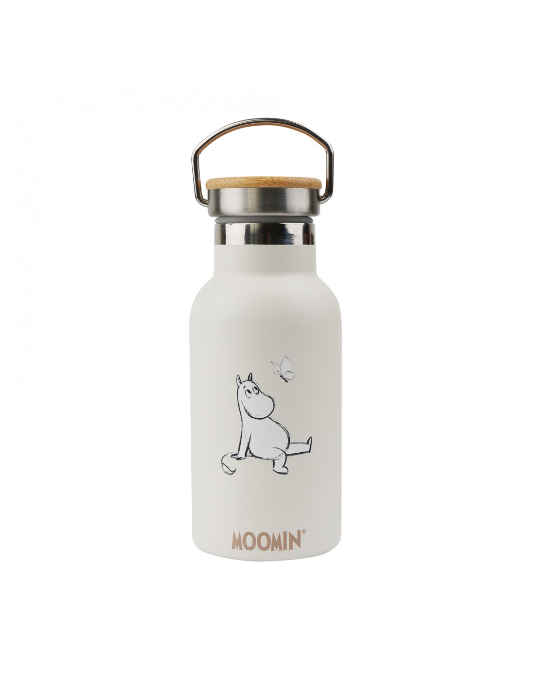 Denne Mumi drikkeflaske i en rolig cremefarvet nuance forener hverdagens funktionalitet med tidløst design. Den er fremstillet af holdbart rustfrit stål og er både let og robust, hvilket gør den velegnet til daglig brug i skole, på arbejde, på udflugter eller til udendørs eventyr.