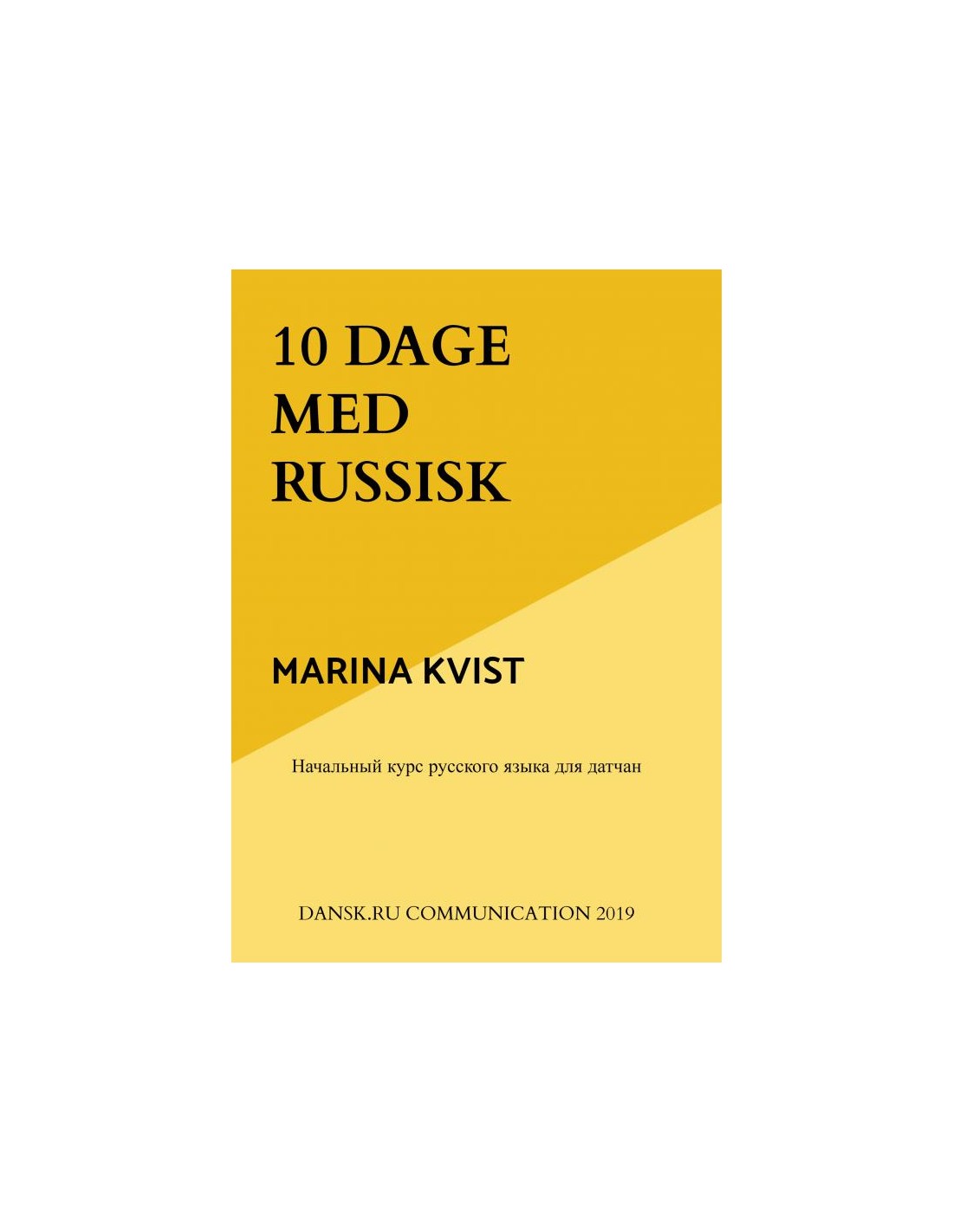 Russisk lærebog for begyndere med grammatik og praktiske øvelser. Bogen inkluderer 10 lektioner for nybegyndere samt audiofiler til hver lektion, som kan downloades fra hjemmesiden. I løbet af kurset lærer man ca. 270 ord, der findes i ordlisten, og man kan starte med at kommunikere.