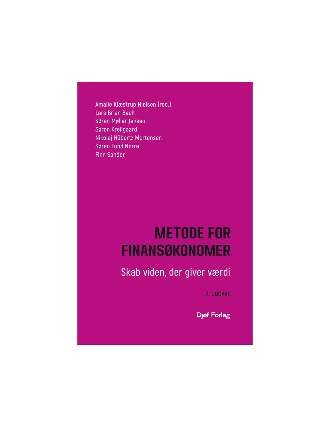 SOM FÆRDIGUDDANNET finansøkonom anvender man data i alle sammenhænge og jobfunktioner, og det er vigtigt at arbejde på et empirisk sagligt grundlag. Det er bogens formål at gøre metodefaget nemmere og mere tilgængeligt, og den indeholder således mange praktiske eksempler på, hvordan man anvender metode i både den finansielle sektor og i generelle økonomifunktioner. Foruden diverse opdateringer indeholder 2. UDGAVE et helt nyt kapitel om kilder, kildekritik og AI. Det er emner, som siden den første udgave af bogen er blevet særdeles aktuelle for studerende såvel som undervisere. Det er samtidig også områder, der er vigtige at have indblik, når du som uddannet finansøkonom kommer ud på arbejdsmarkedet. METODE FOR FINANSØKONOMER behandler de væsentligste metodiske aspekter med særligt henblik på både opgaveskrivning og karrieren bagefter ved at: • introducere skriveprocessen, udarbejdelsen af en problemformulering samt forskellige opmærksomhedspunkter i arbejdet med kilder og AI • introducere udgangspunkterne for det metodiske valg • give læseren redskaberne til både at indhente og analysere data med afsæt i metodemæssige valg. KORT SAGT giver bogen værktøjerne til at reflektere over de metodemæssige valg, som er nødvendige for at træffe begrundede beslutninger. Det er netop disse værktøjer og refleksioner, som kan skabe viden, der giver værdi for dig og din kommende virksomhed.