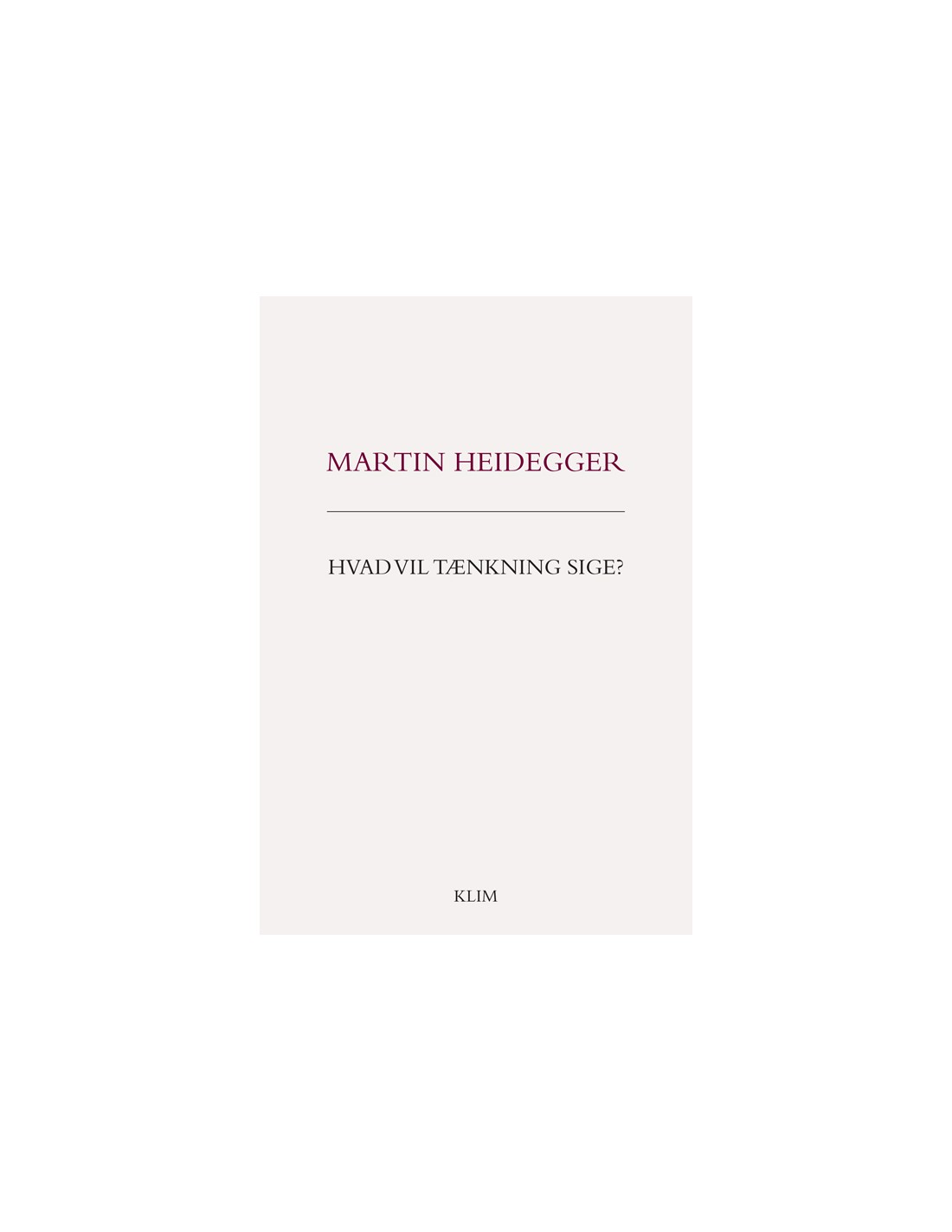 Martin Heidegger er en af det 20. århundredes største tænkere. Hvad vil tænkning sige? består af en række forelæsninger, som var de første Heidegger holdt efter krigen. De udkom i bogform i 1954, og værket bliver af mange betragtet som det vigtigste inden for hans sene filosofi. I bogen forsøger Heidegger at genfortolke betydningen af sit hovedværk, Væren og tid, ved at forstå væren med afsæt i menneskets tænkning eller rettere mangel på samme. Provokerende, men øjenåbnende tager han i Hvad vil tænkning sige? udgangspunkt i en påstand om, at det ”betænkeligste er, at vi endnu ikke tænker, stadigvæk ikke, selvom verdens tilstand bliver fortsat mere betænkelig.” Derfra går Heidegger, som også i Væren og tid, tilbage til de tidlige græske tænkere, og gennem en fortolkning af Parmenides undersøges det, hvorledes tænkningen er blevet forstået gennem filosofihistorien og frem til moderne tid, hvor en tænkning synes mere påkrævet end nogensinde. Bogen er forsynet med et efterskrift af Thomas Schwarz Wentzer, der introducerer til værket og belyser rammen for dets udgivelse. ”I arbejdet for at forstå Heidegger er Hvad vil tænkning sige? lige så vigtigt et værk som Væren og tid. Det er den eneste systematiske præsentation af tænkerens sene filosofi og ... det er måske den mest spændende af alle hans bøger.”