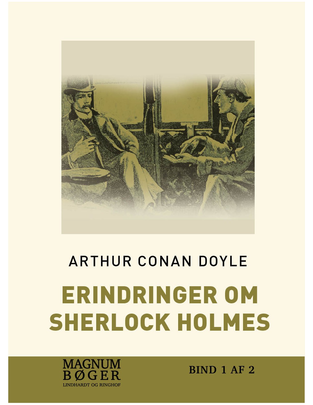 ”Han er forbrydelsens Napoleon, Watson … Han sidder ubevægelig, som en edderkop midt i sit spind, men dette spind består af tusindvis af tråde, og han er bevidst om selv den mindste bevægelse i enhver af dem.” I ”over tusind sager” har Sherlock Holmes bekæmpet ondskab og kriminalitet og sørget for, at de skyldige blev bragt bag lås og slå. Men den største skurk af dem alle, en højt begavet mand, hvis hånd Holmes har anet bag en stor del af forbrydelserne, er hidtil undsluppet ham: Professor Moriarty. Holmes har dog langsomt arbejdet sig ind på ham, og nu er tiden kommet, hvor de to store modstandere endelig må krydse klinger. I sine Erindringer om Sherlock Holmes beretter dr. Watson om dette store og skæbnesvangre opgør. Om dette og om andre af vennen og mesterdetektivens store sager – mysteriet om den forsvundne væddeløbshest Silver Blaze, gåden om Musgraveritualet og mange, mange flere. Udgivelsen er en storskrift-udgave i 2 bind til svagsynede i serien MAGNUMBØGER Lindhardt og Ringhof.