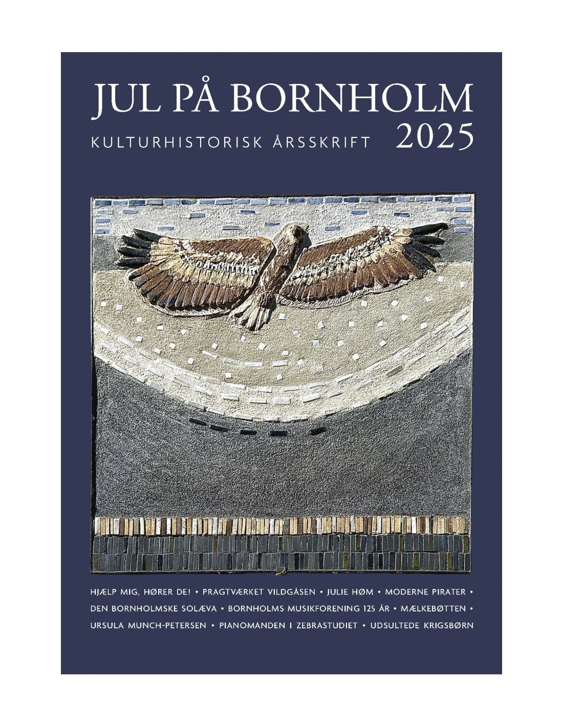 Årets forside er et værk af keramikeren Julie Høm, som i 2025 fyldte 80 år, men stadig arbejder i sit værksted hver dag. I en artikel fortæller hun om sit livs største arbejdsmæssige udfordring og om, hvad hun fagligt og menneskeligt har lært af sin mor Lisbeth Munch-Petersen. Flere artikler i årsskriftet mindes Ursula Munch-Petersen, Julie Høms storesøster, som gik bort i det forgangne år. Ursula Munch-Petersen nåede inden sin død at skabe et unikaværk til Bornholms Kunstmuseum.