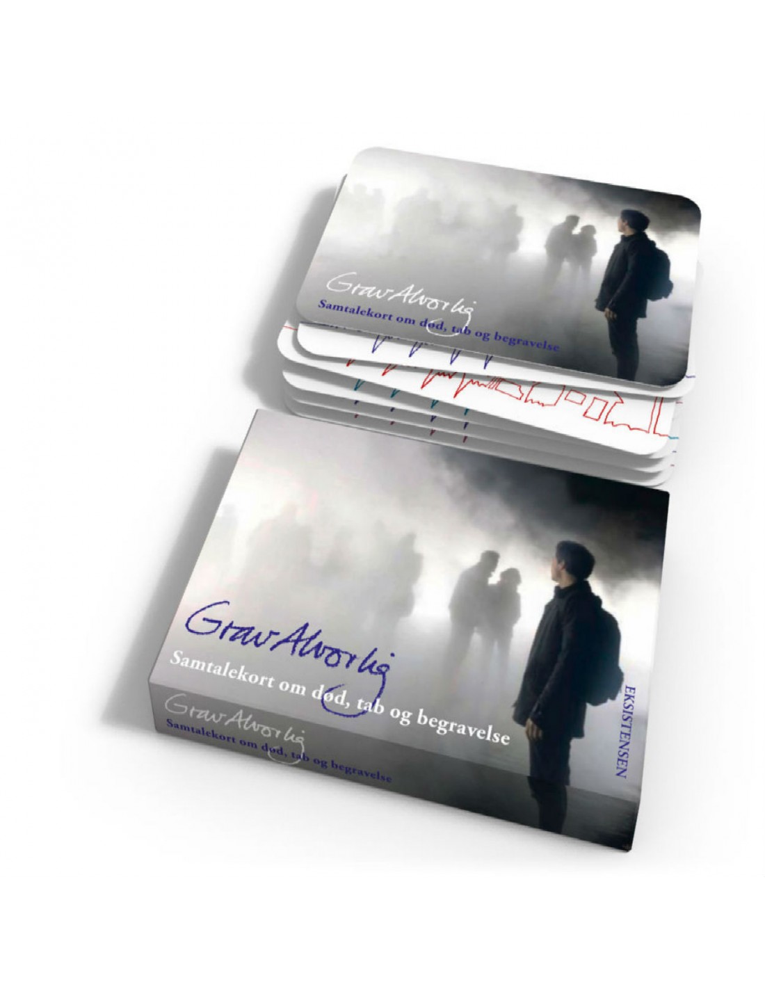 GravAlvorlig er samtalekort om de svære spørgsmål: Død, tab, begravelse og savn. Træk et spørgsmål og få samtalen i gang.