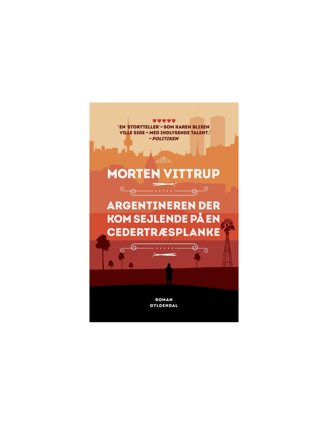 'Argentineren der kom sejlende på en cedertræsplanke' er en farverig og vidt forgrenet historie om tre generationer og deres valg i livet. Om de løgne, myter, minder, sygdomme og vaner, som binder generationer sammen. Det er en historie om ishavets fangere, Polynesiens vaniljeplantager, 00´ernes småsvindlere, forældres svigt, Che Guevara, udlængsel og terror, og fortællingen breder sig fra mellemkrigstidens Argentina over Francos Spanien til Europa efter 2001.