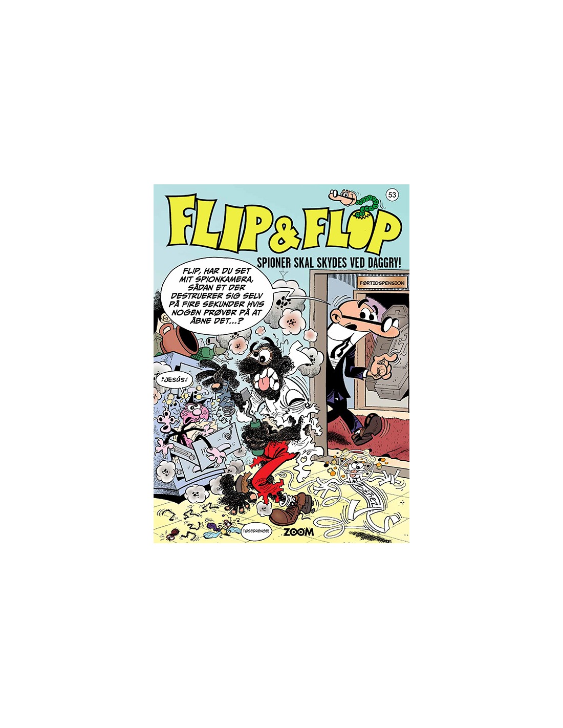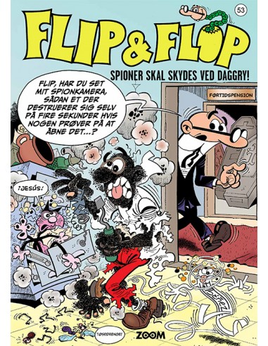 ”Spioner skal skydes ved daggry”, eller skal de? I denne fantastiske fortælling ser vi hvordan den hemmelige tjeneste – hvem ellers? – bliver pålagt at afsløre et internationalt netværk af brutale og snedige agenter der er ude efter nationens største hemmeligheder. Det er naturligvis tjenestens allerdygtigste agenter - Flip og Flop naturligvis - der bliver betroet denne vigtige opgave. Vi kommer i denne historie ind på gardens kaserne, træffer chefen for den højere spionage og løser problemerne med de farlige spioner på forsøgsgården ”Den glade ko”!