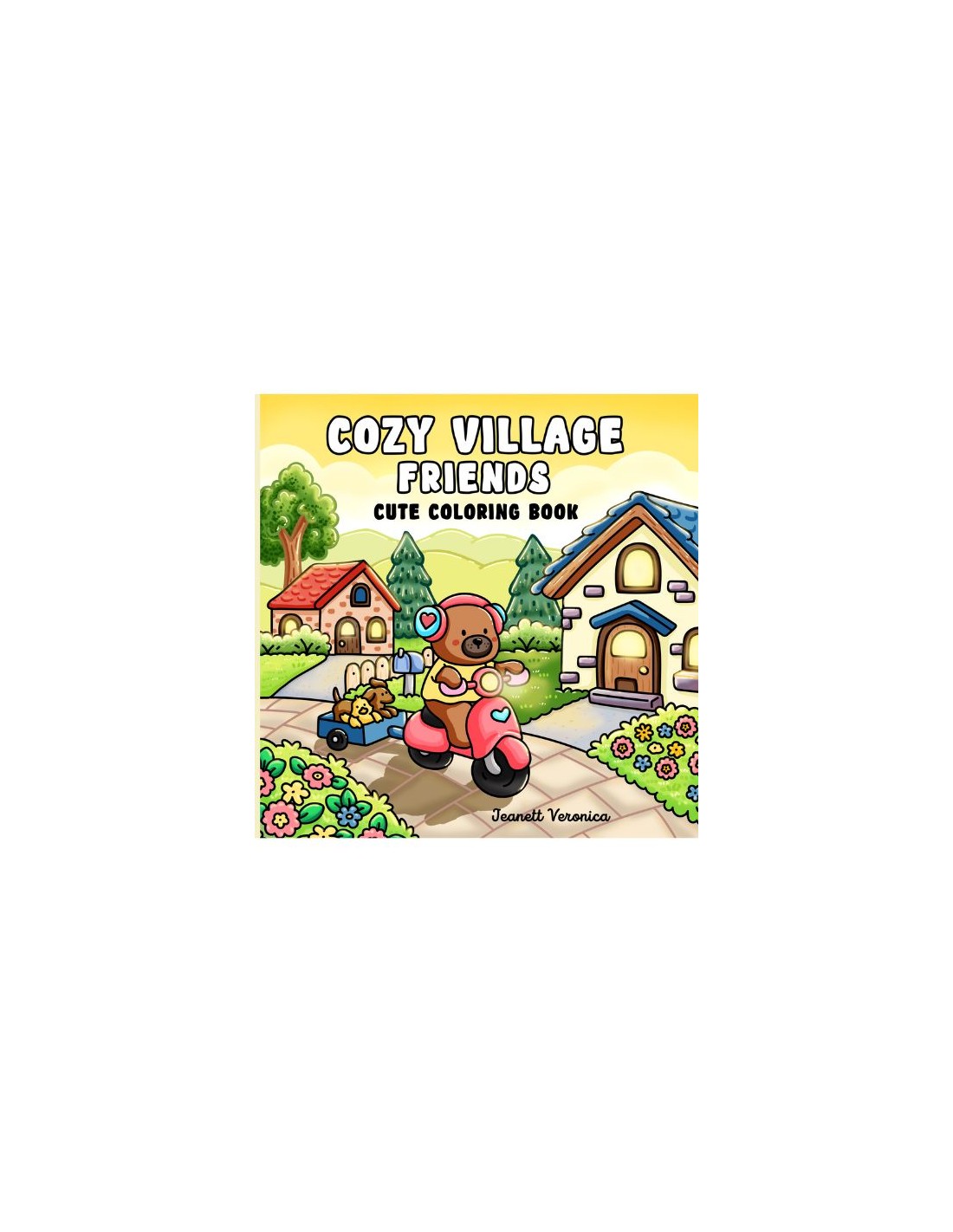 Cozy Village Friends er skabt af den danske forfatter Jeanett Veronica, som står bag et af de mest populære malebogsbrands på Amazon.com. Malebogen inviterer dig ind i en hyggelig lille landsby fyldt med charmerende huse, små butikker og søde dyrevenner, der lever side om side.